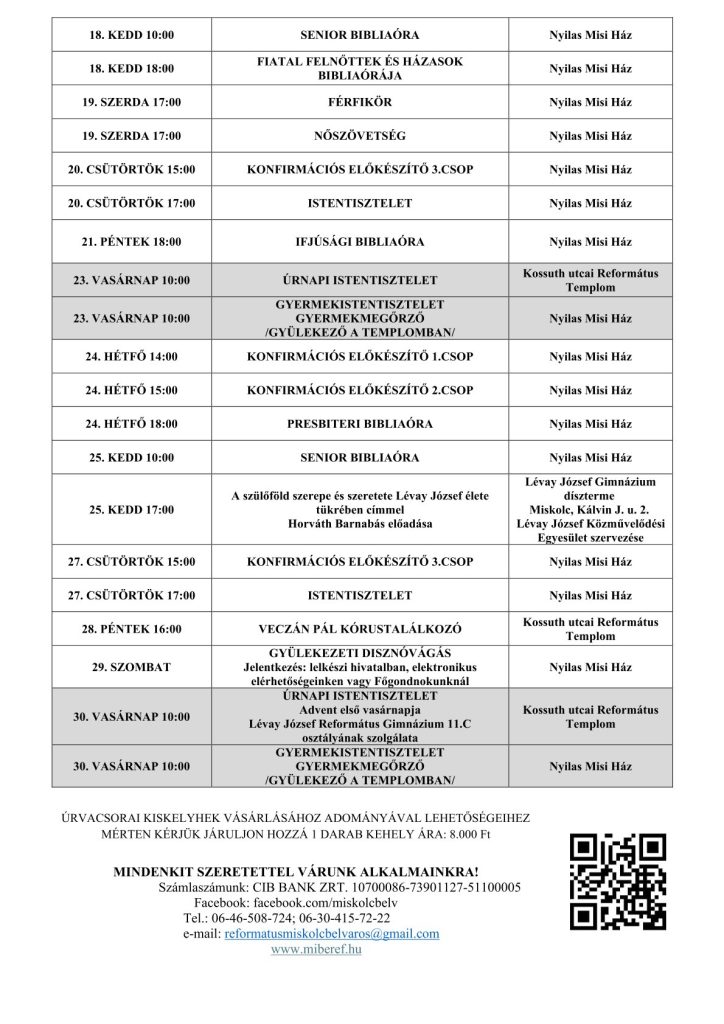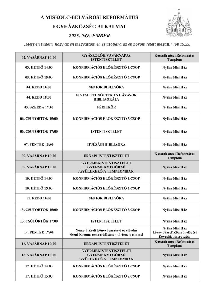 205. november havi programok